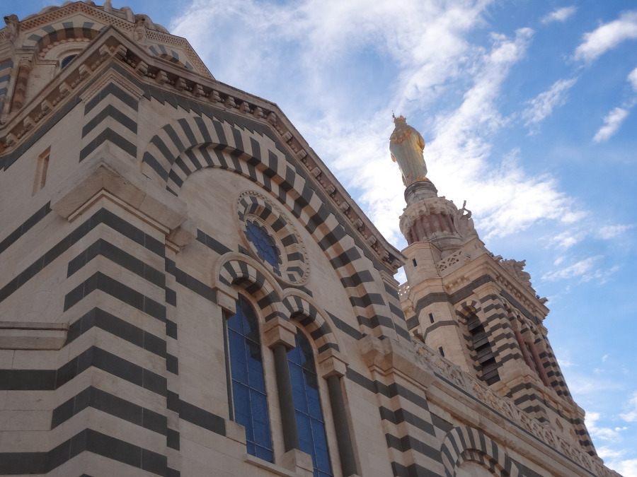 바다로 마르세유항으로 들어오면 가장 먼저 성당 꼭대기에 금빛의 성모상 이 보입니다.