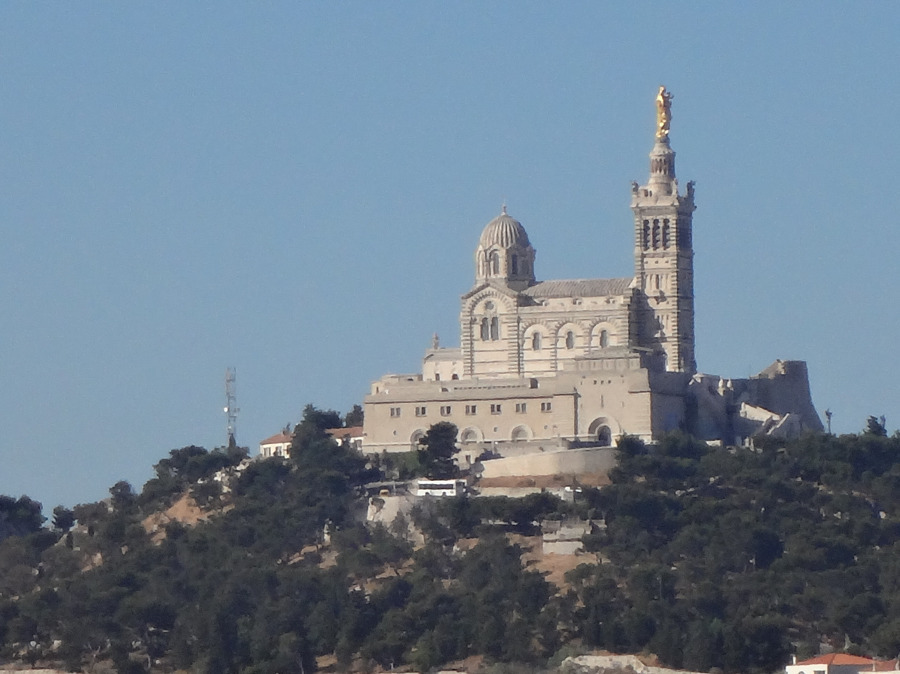 멀리 언덕에는 “노트르담 드 라 가르드” 사원 이라 황금빛으로 빛나는 성모 마리아상이