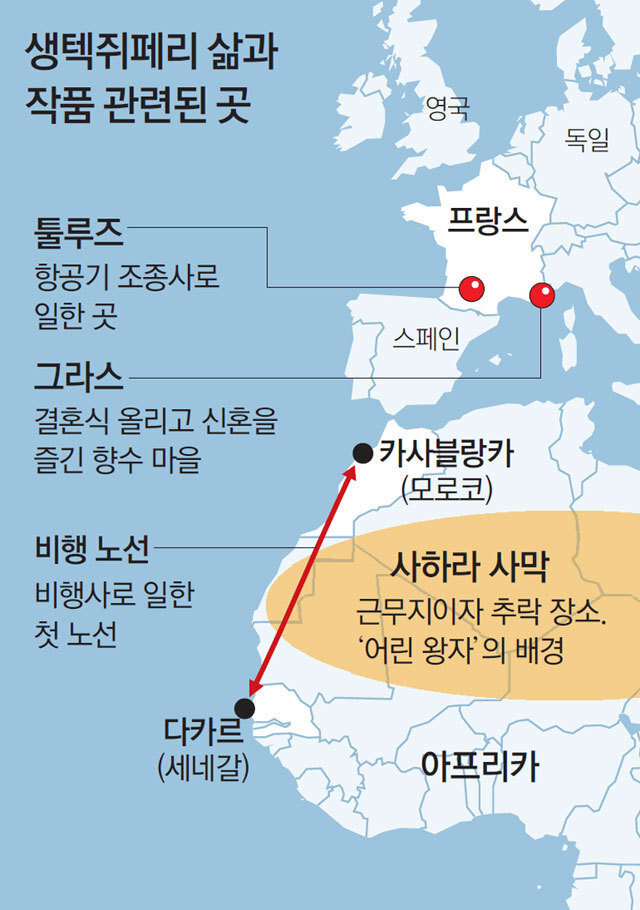 조종사로 일하며 카사블랑카(모로코) ∼ 다카르(세네갈) 노선을 개척한다. ”