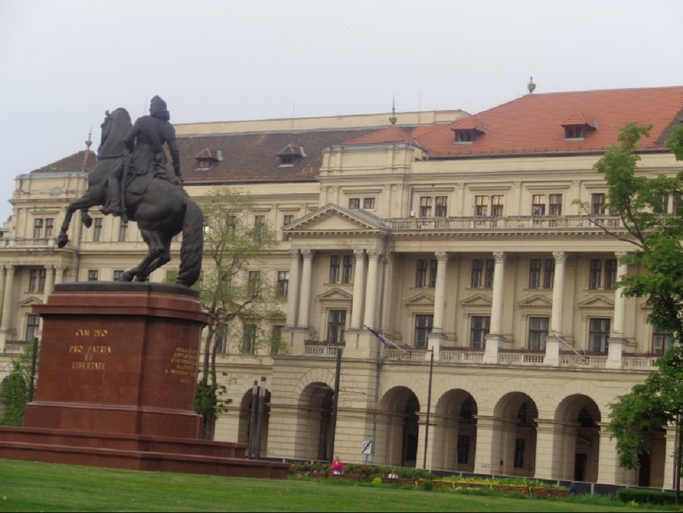 영웅들의 조각상을 둘러놓은 영웅광장 으로 광장 중앙의 높은 탑 위에는