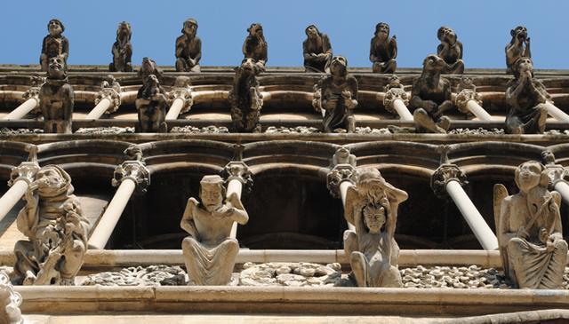 기괴한 동물상 이 늘어선게 특이한데 성당의 2층은 아케이드장식으로 꾸며져 있는