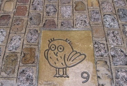 유럽 여행을 끝마칠수 있기를 바래 보는데, 거리 길바닥에서 올빼미 그림 이 새겨져