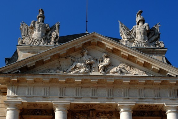 정문 위를 장식하고 있는 조각 작품 이 아름답고 정교하기로 유명하다고
