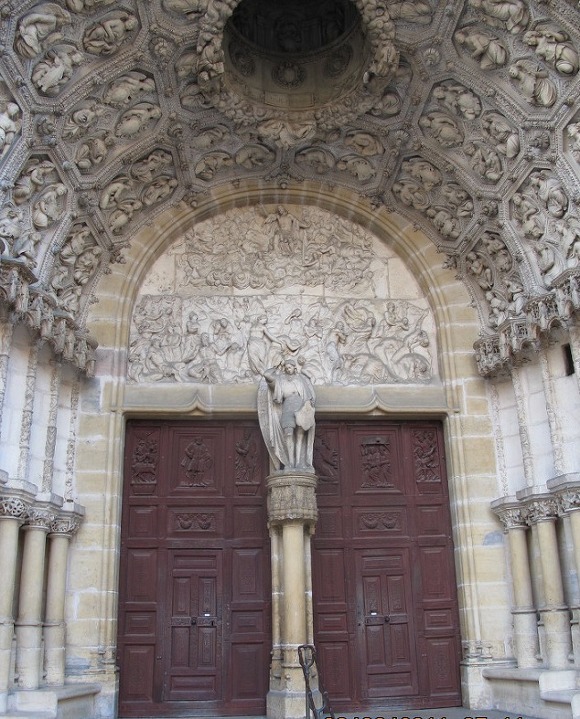 위에는 최후의 심판 부조 가 있으며 내부는 고딕식이고 천장이 높은 내진에는 왼편