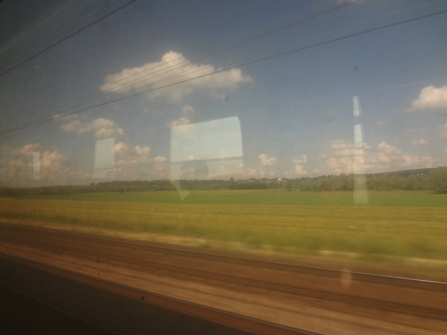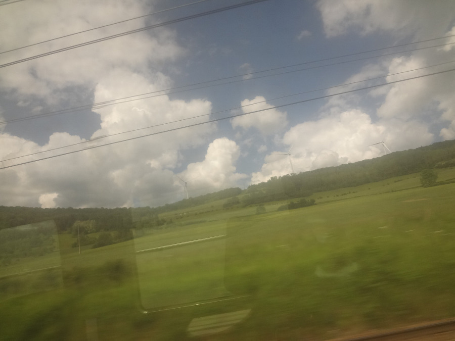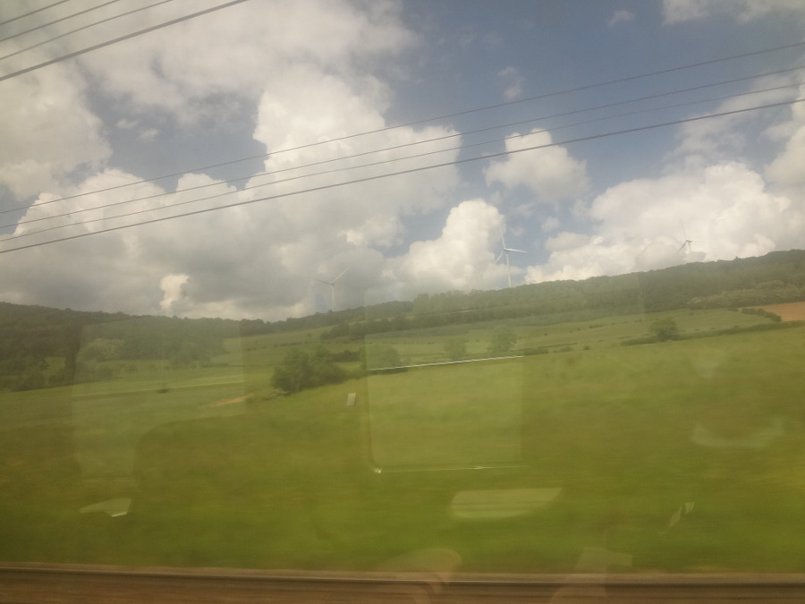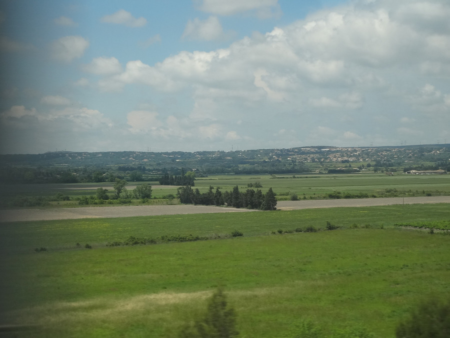 TGV 기차에 오르니 기차는 푸르른 밀밭 을 달리는데 산이라고는