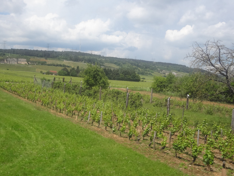 5월 24일 부르고뉴 본 에서 오후 1시 04분 기차를 타고 동쪽으로 포도밭이 늘어선 들판을