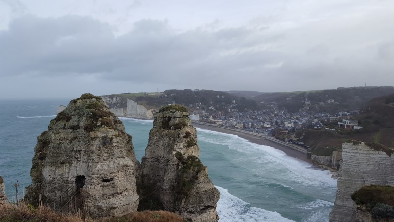 왼쪽 절벽은 팔레즈 다발 Falaise d' Aval 이고 오른쪽 절벽은 팔레즈 다몽