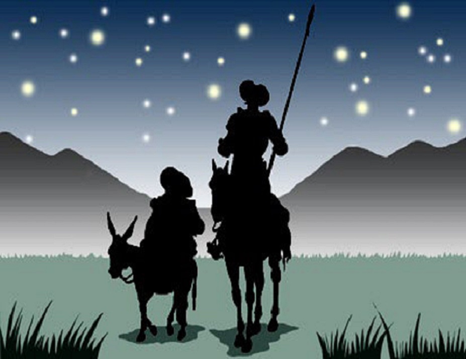 사람들은 돈키호테를 미친 사람 취급하지만 그는 결국 가장 가까운 동료 산초를 변화시켰고 산초는