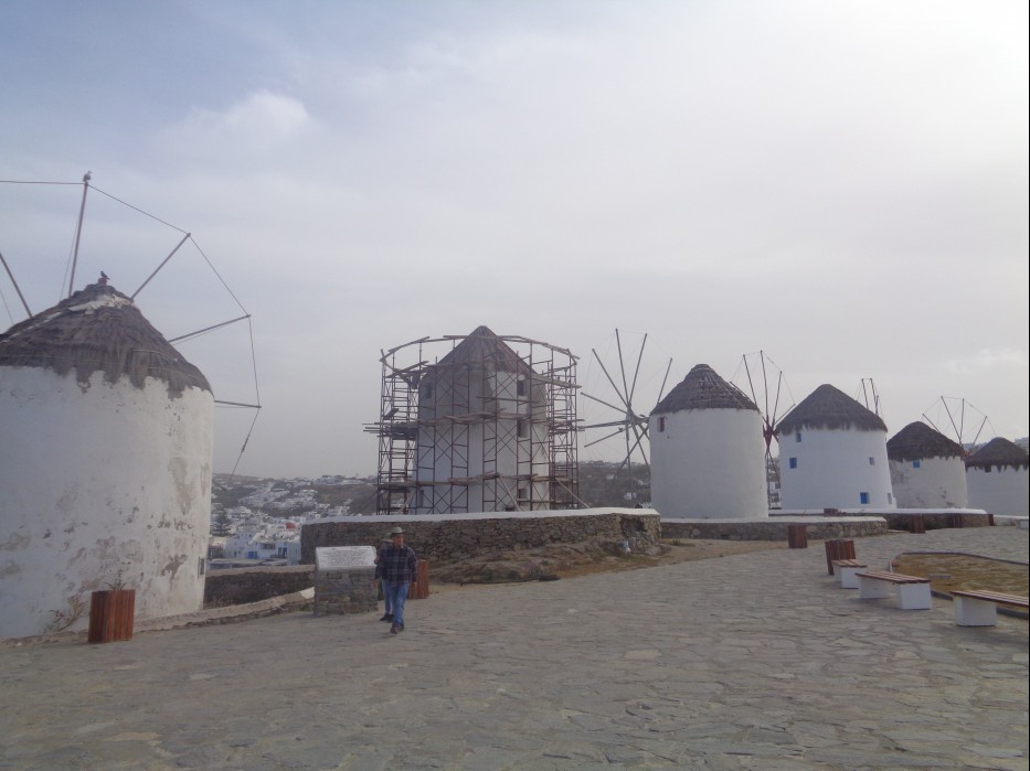 나와 골목을 구경하면서 10분을 걸어 호라 마을 Kato Mill 언덕에 도착하니 풍차 6개가 보입니다.