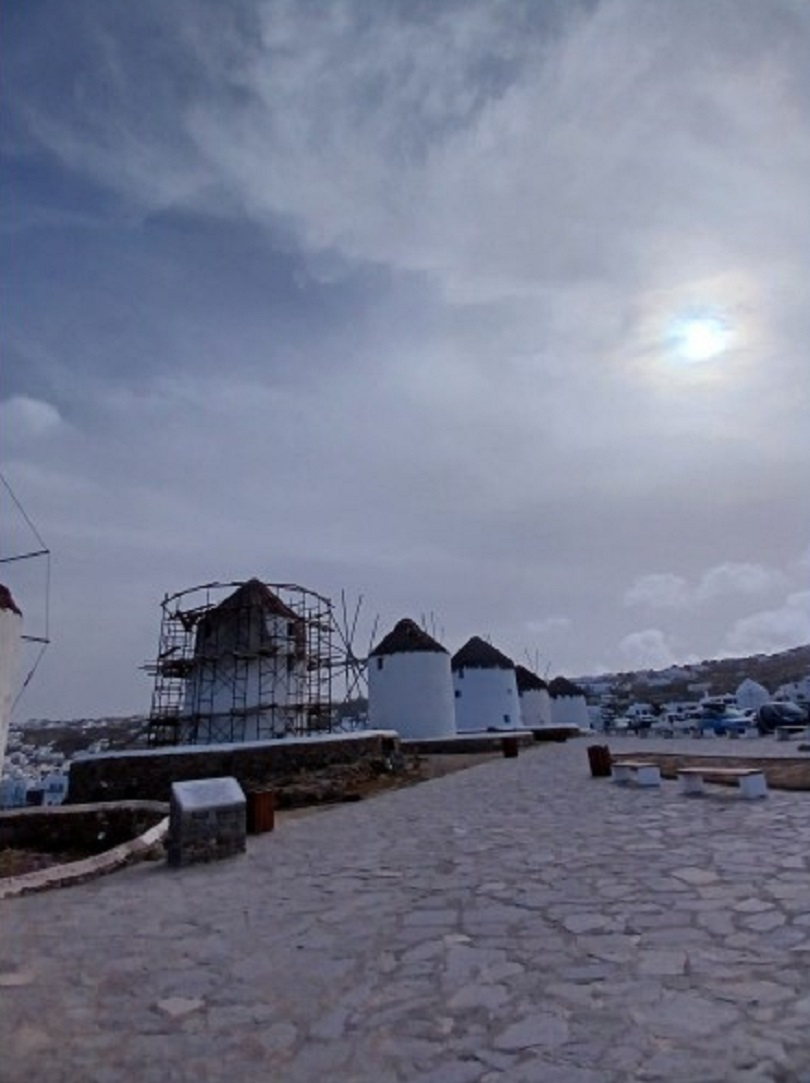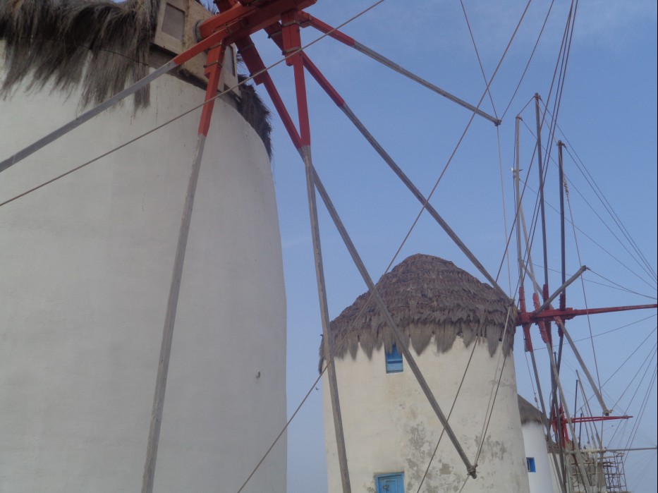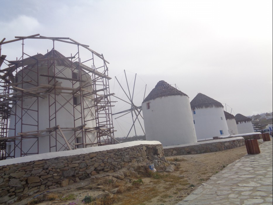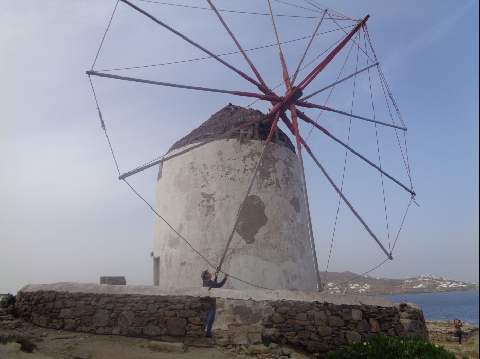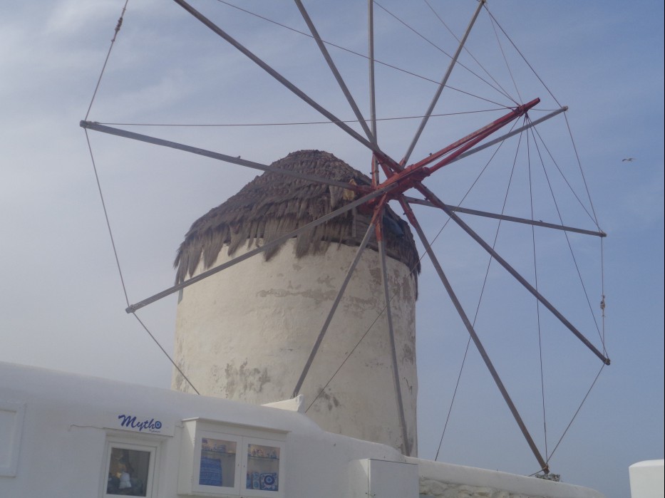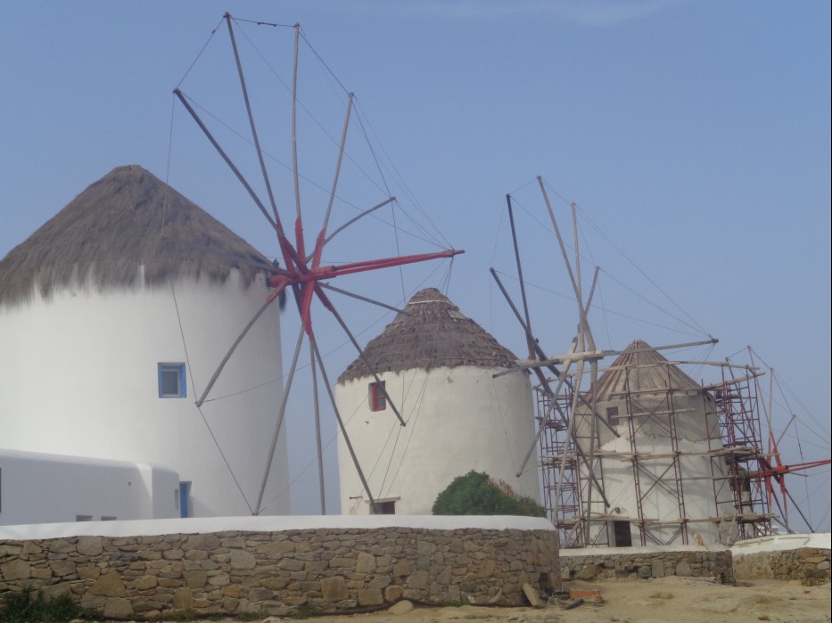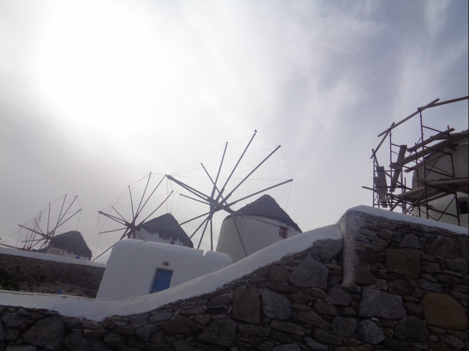 한 때 밀을 빻던 제분소로 사용되었던 미코노스의 절벽에 위치한 새하얀 풍차는 가장 유명한