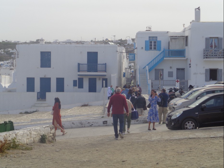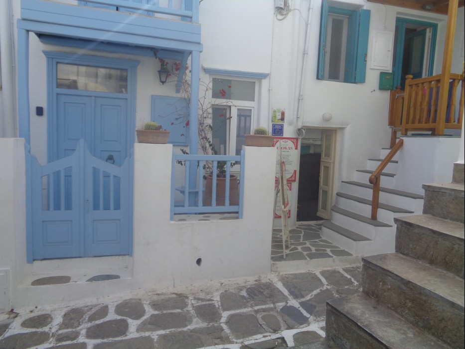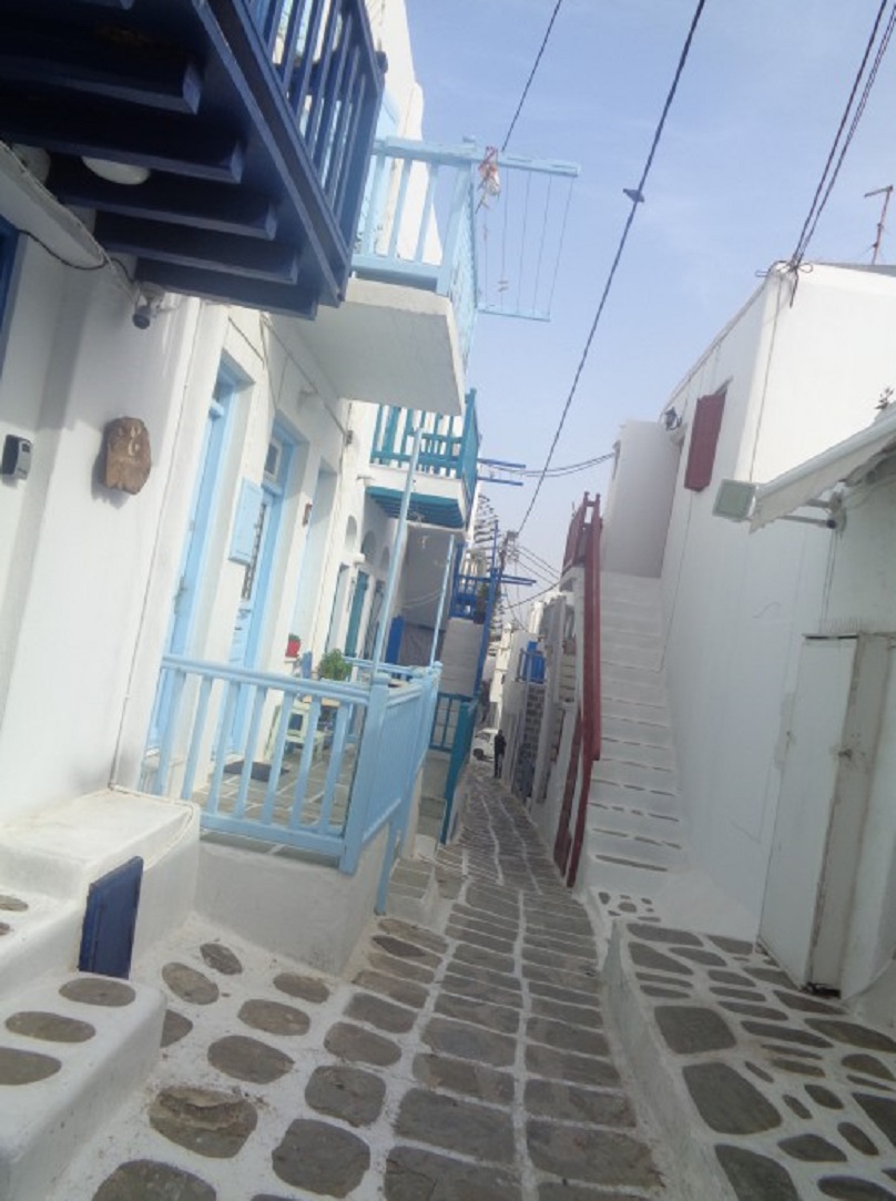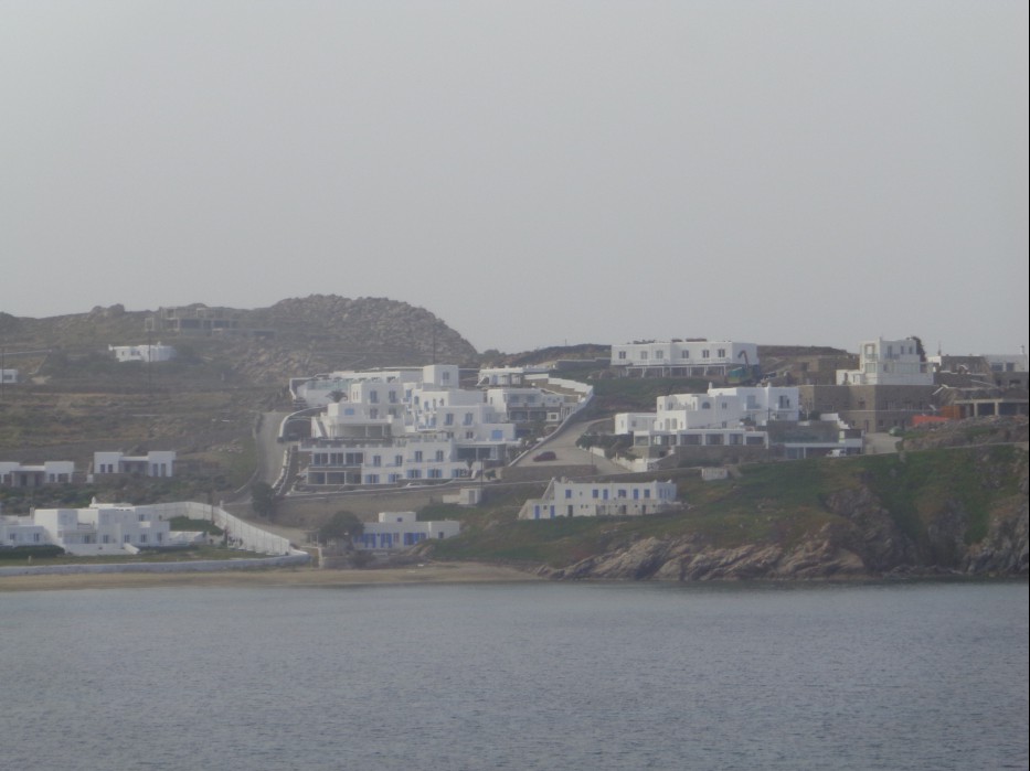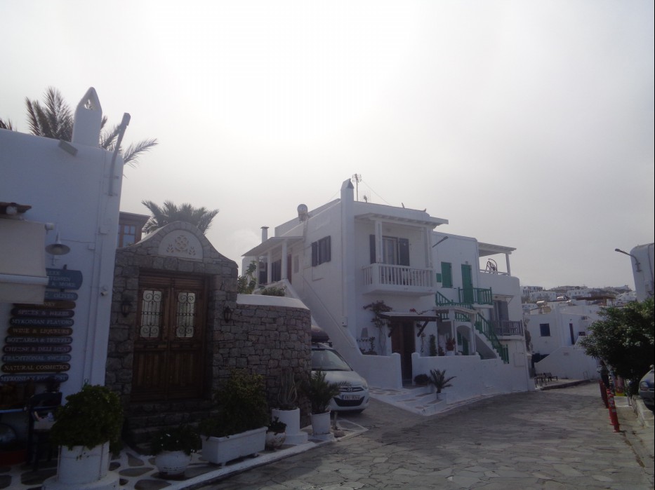 에게안 항공 비행기를 갈아타고는 미코노스 공항에 내려 택시를 타고 호텔에 도착했습니다.