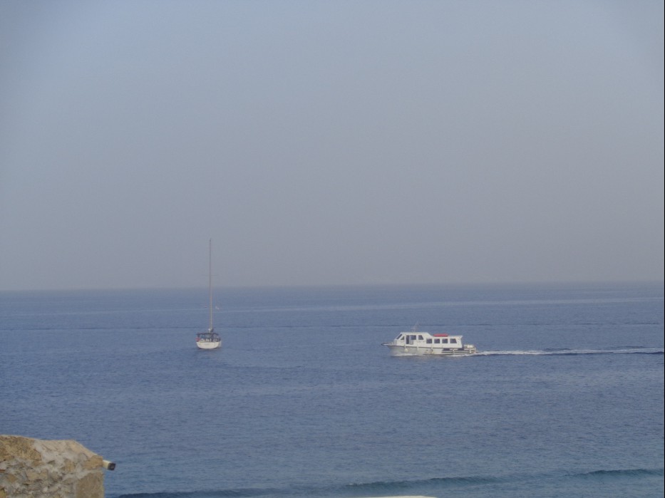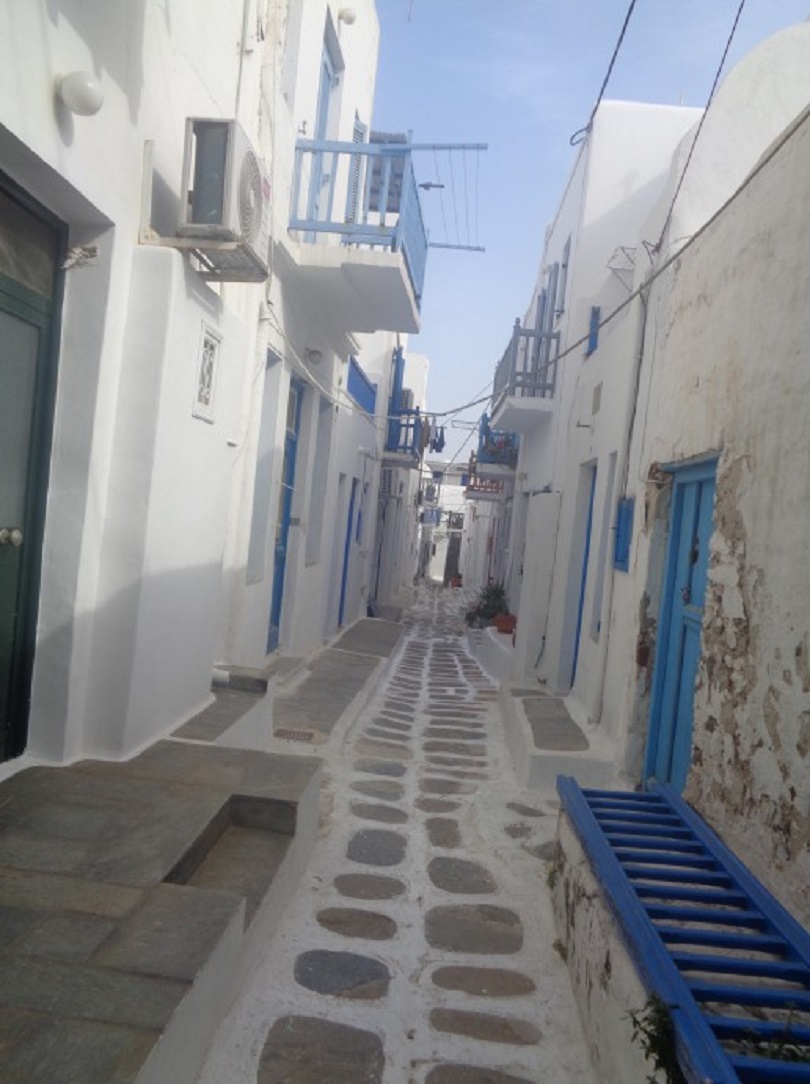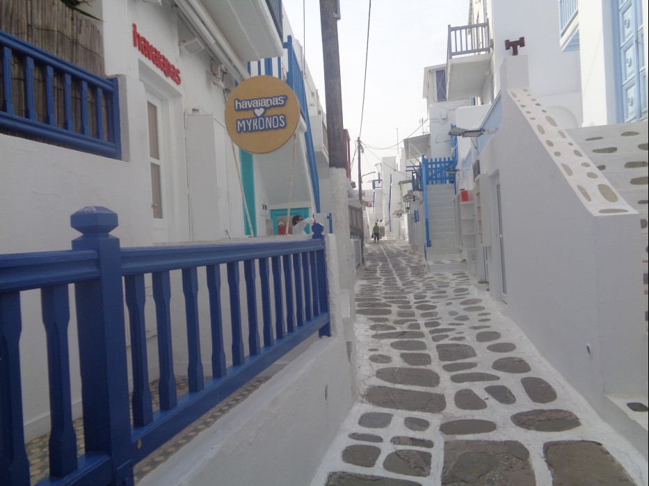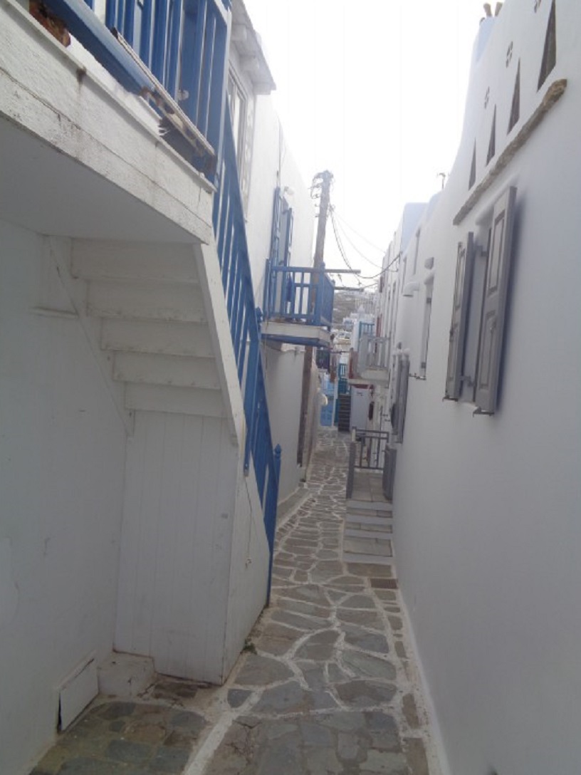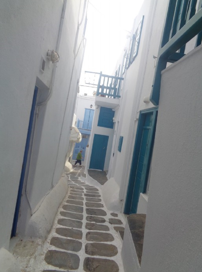 에게안 항공 비행기를 갈아타고는 미코노스 공항에 내려 택시를 타고 호텔에 도착했습니다.