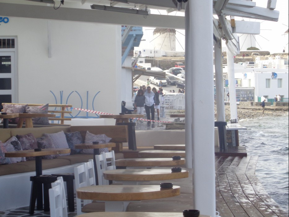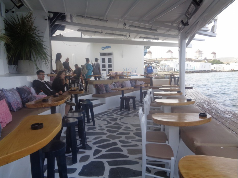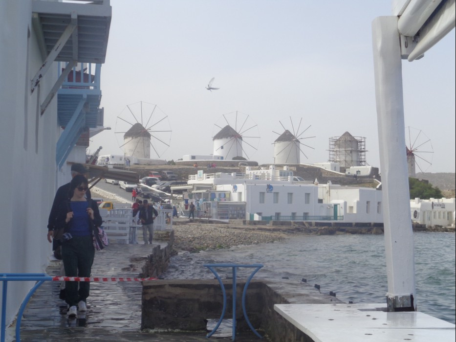바다를 향하며 언덕 위에 5개의 풍차가 보이며 카페와 바 및 디스코텍이 몰려있습니다.