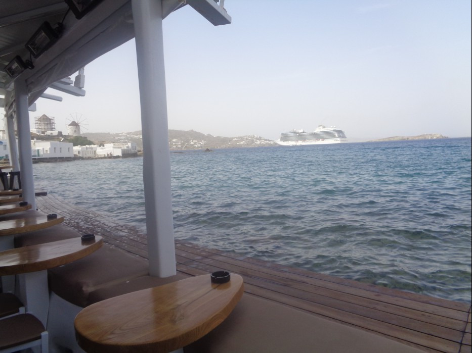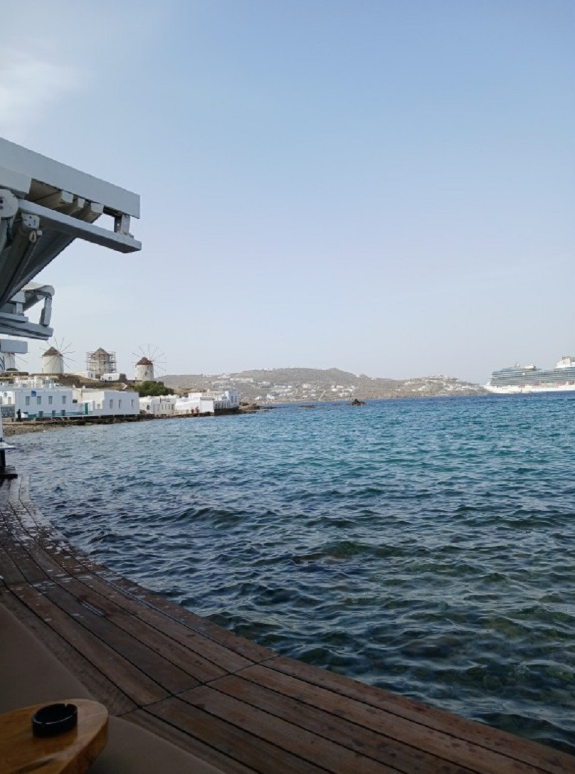 2024년 4월 25일에 그리스의 미코노스의 호텔 베란다에서 Sea View를 구경하고는 미코노스타운