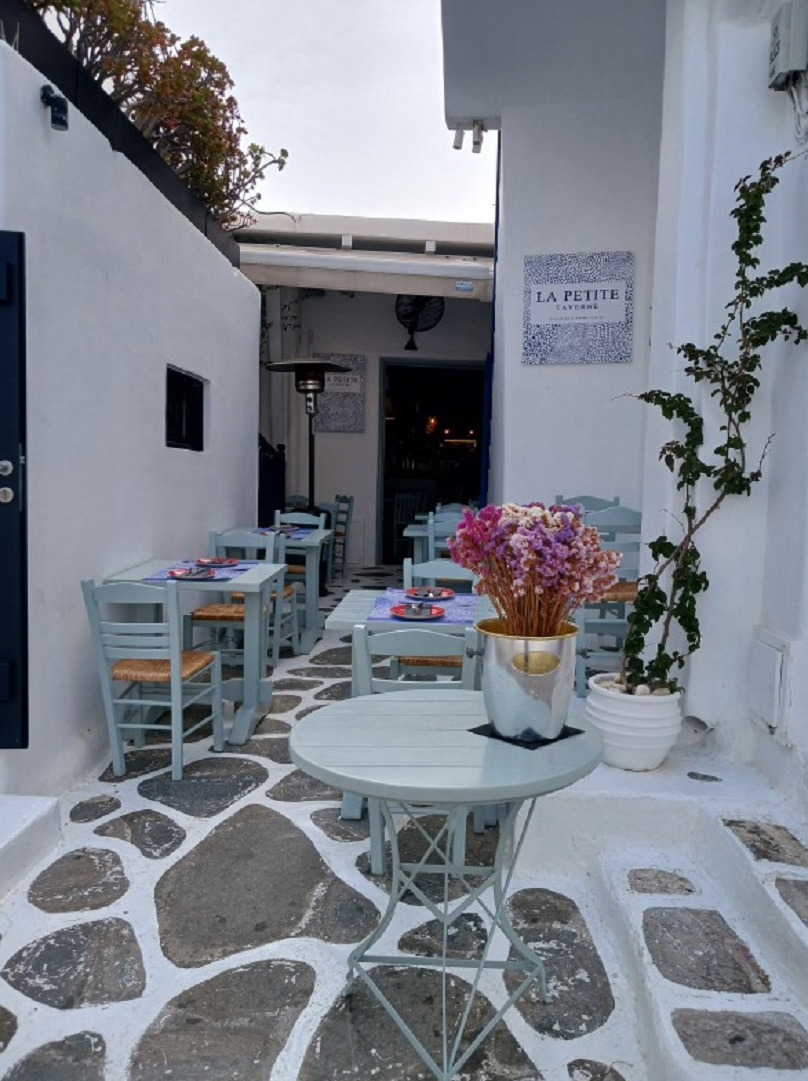 식당에 관광객이 많으니 아마 빵에 커피로 간단한 아침을 먹는가 본데, 그런데.... 그리스의 미코노스섬