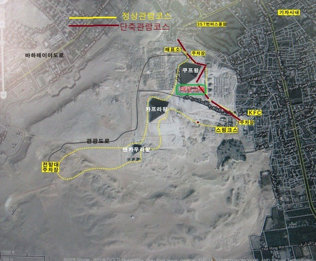 피라미드의 위치는 카이로 서쪽 13km 기자 Giza 에 쿠푸왕등 3개의