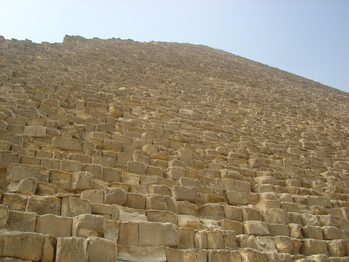 피라미드 외부는 230 만개의 바위돌 위에 1만 5천개의 돌로 반사경 같이 외벽을 덮었는