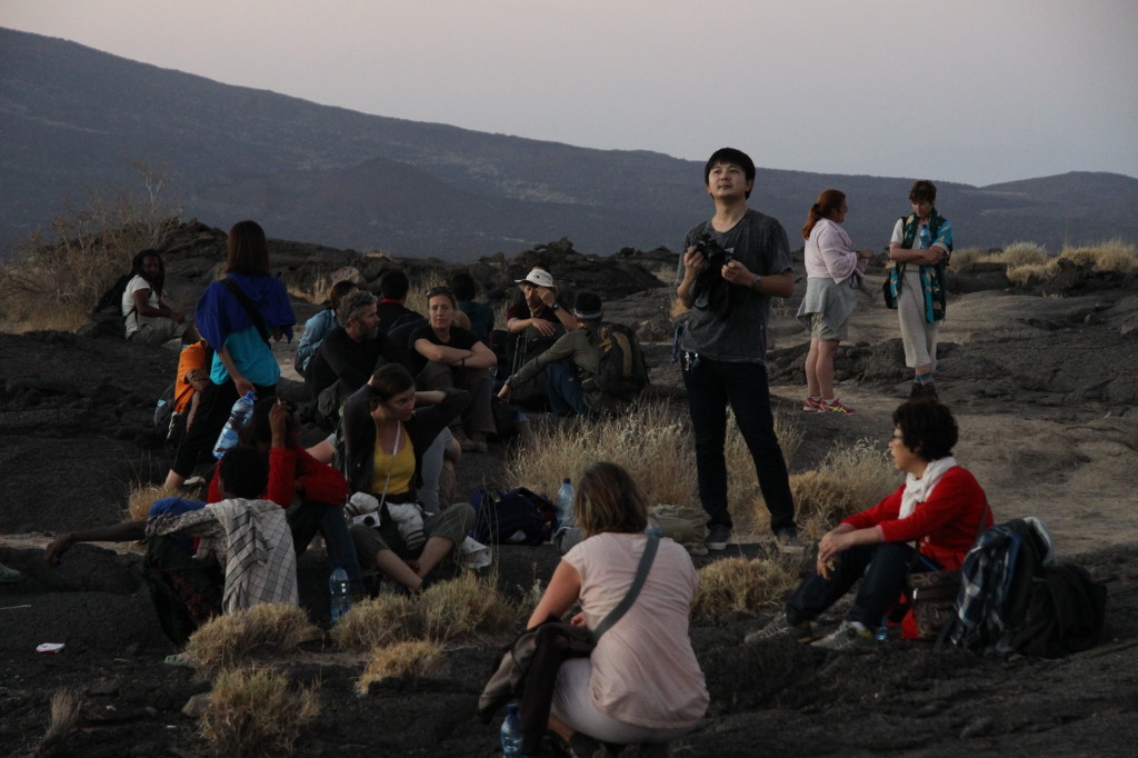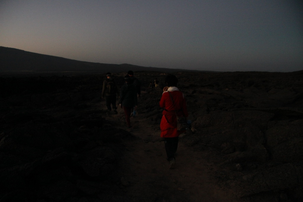 가이드의 조심스러운 말소리가 들린다. Good Morning. It’s time to get up! 우리는 서둘러 다시 일어났다. 아직도 별이 총총 빛나는 밤이다. 새벽이란다. 시계를 보니 새벽 5시다. 내려가야 한단다. 지금 출발해야지 더위를 피해서 베이스 켐프에 도착할 수 있단다. 또 비스켙을 준다. 짐을 챙기고 자던 곳을 정리한다. 어둠속에서도 잘 하고 있는 것 같아 웃음이 나온다. 가이드를 따라간다. 멀리서 다시 한 번 화산을 쳐다본다. 어제 밤의 감동이 다시 전해지는 것 같다. 잠시 머문 후에 출발이다. 이제 내려간다. 6시다. 해가 뜨면 덥고, 아침 식사를 베이스 캠프에서 할 예정이다.