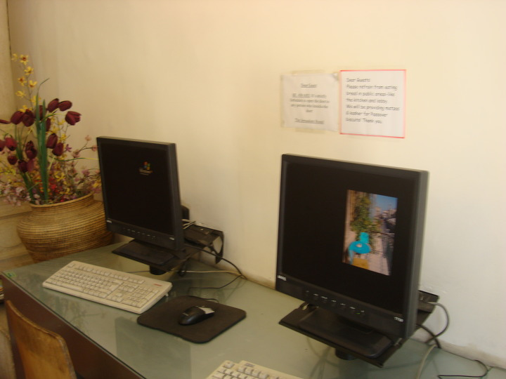 그러고는 택시에서 내려서 호스텔로 들어가니 전에 없던 컴퓨터 2대가 보이는데 소리쳐 부르니