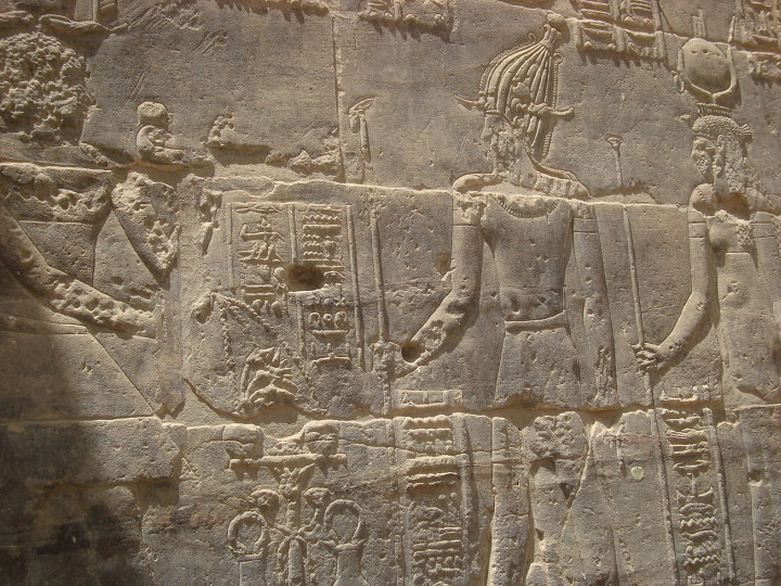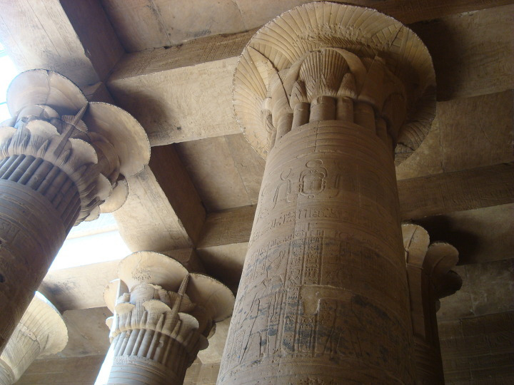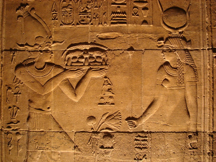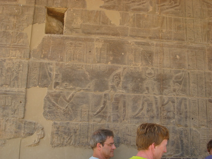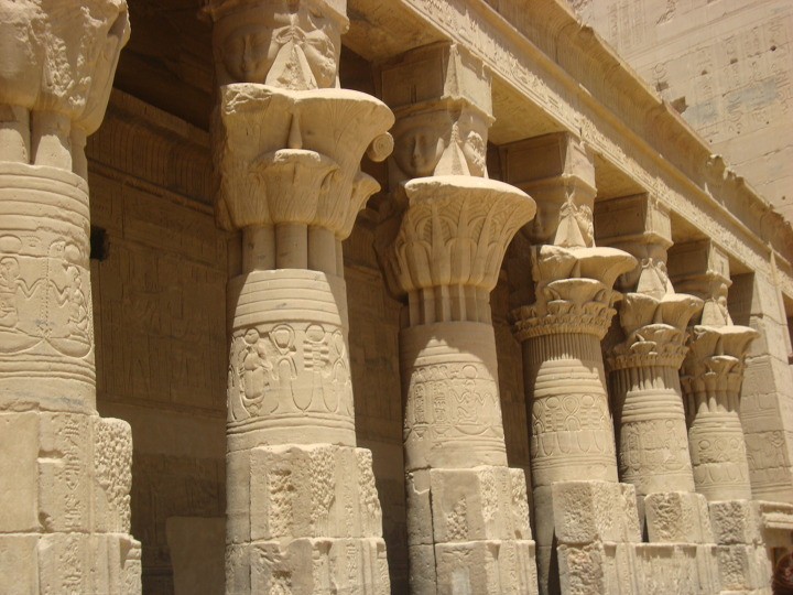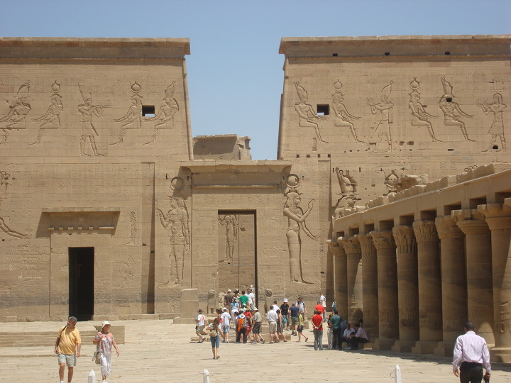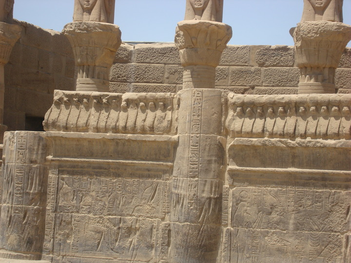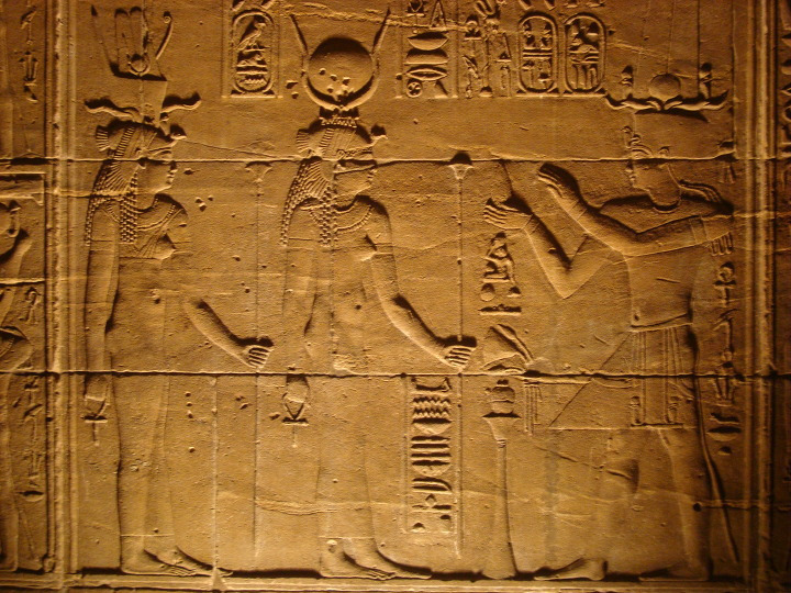 에 건축된 여기 이시스 신전에는 제 1 탑문을 보면 몇몇 신들이 새겨져 있습니다.