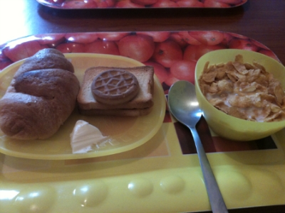 아침은 차려져 있는 것 먹을 만큼 덜어서 먹습니다.