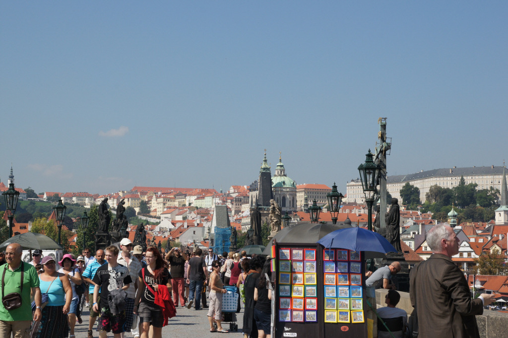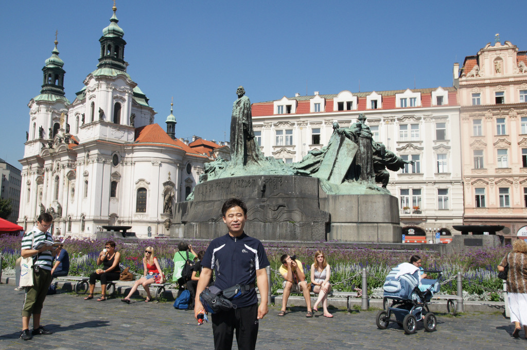 광장의 순교자로 추앙받는 얀후스의 군상에서 사진 한컷 찍고,,,, 카렐교로 향함,,,체코인들은 신앙심이 대단한 것 같다,,, 순교자 카렐을 기리기 위하여 다리에 각종 성인조각상(30구)을 만들어 놓았고,,, 약 500미터 다리가 박물관이라 할 수 있었으나 햇빛이 넘 더워 오래 머물 수는 없었다...