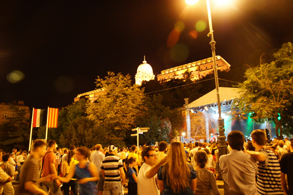 부다왕궁아래 팝공연에 흥에 겨운 사람들