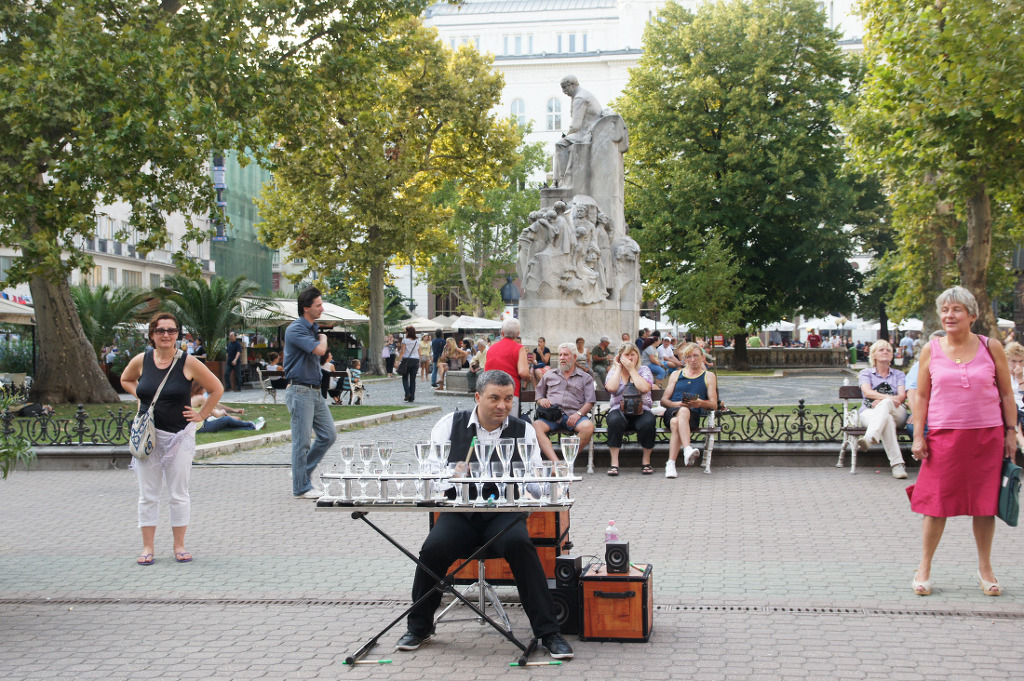 부다페스트- 바치거리 입구에서 유리잔으로 연주,,,
