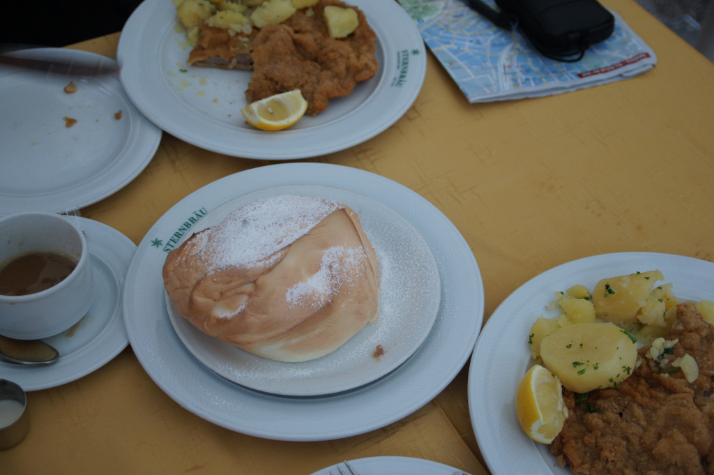미라벨정원에서 구시가지로 Makartsteg다리를 건너 민박집에서 추천한 Sternbrau래스토랑에서 저녁식사 우리의 돈까스같은 것으로 조금 짜서 다 먹지는 못함(유럽인들이 대체로 음식을 더 짜게 먹는 듯,,)