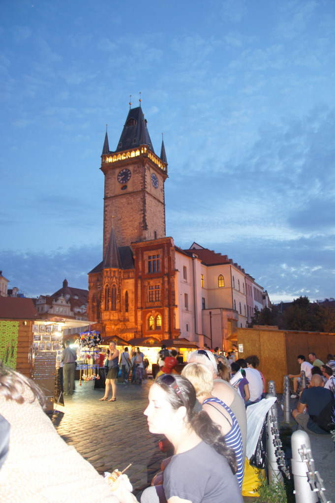 틴성모교회 반대편 1400년대에 만들어 졌다는 구시청사의 시계탑에 많은 사람들이 장치시계에 시선이 모여 있어,,,, 지켜 보았더니 정각이 되자 시계장치의 맨위 창이 열리면서 조각된 12명의 사도가 돌고 있었다....
