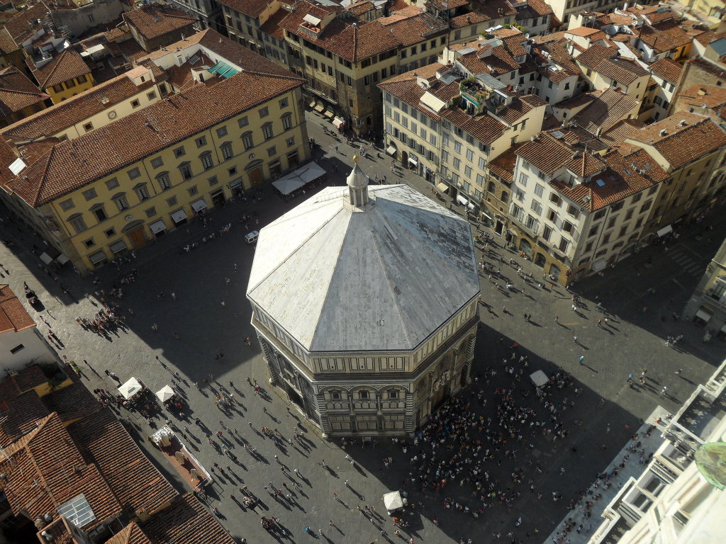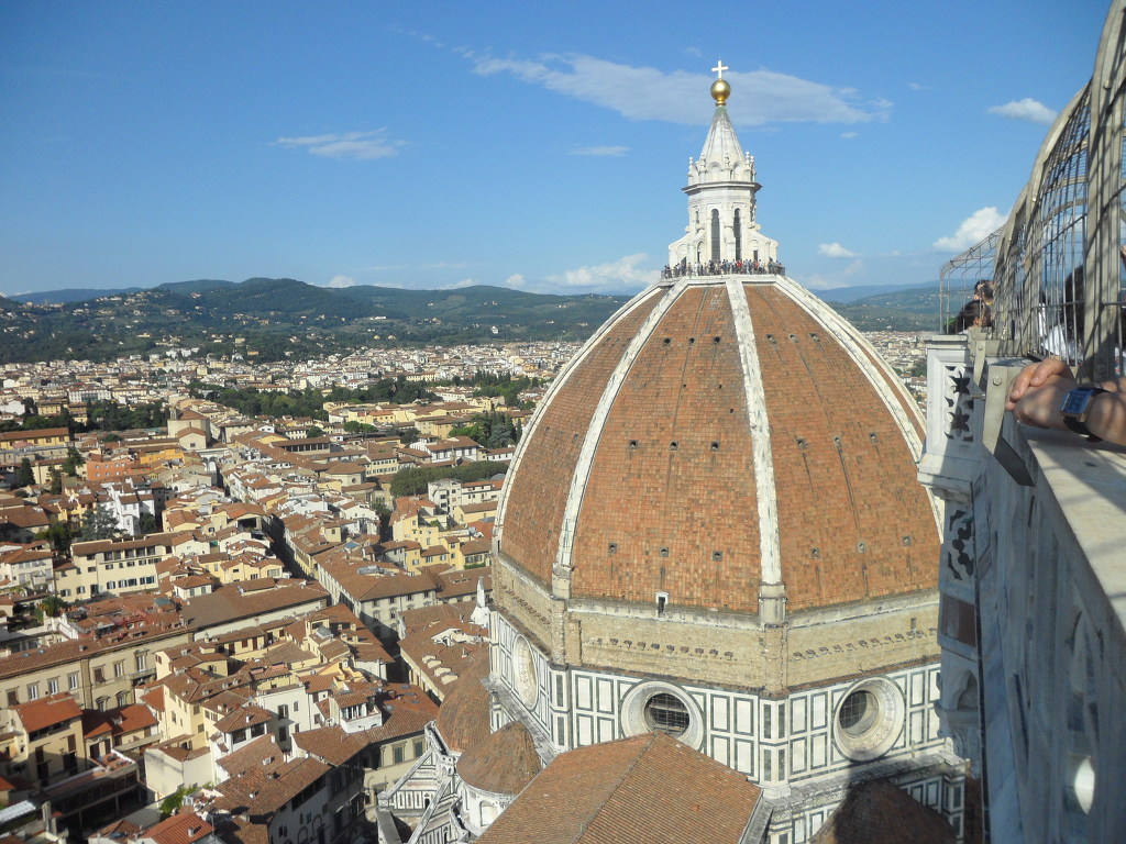 조토의 종탑에서 본 두오모예요. 두오모 꼭데기에 올라간 사람들도 보이네요.