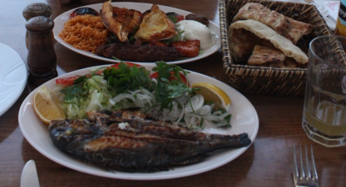 모듬 22TL 생선케밥 17TL.. 길거리 케밥보다는 비쌌지만 맛있다..