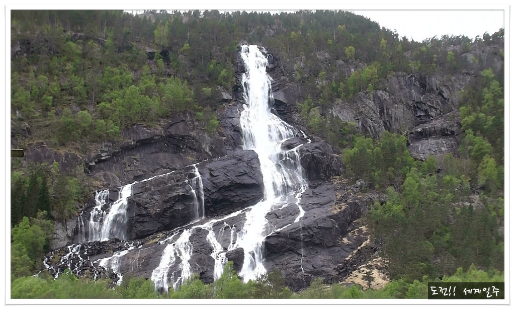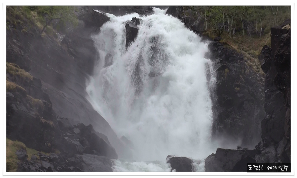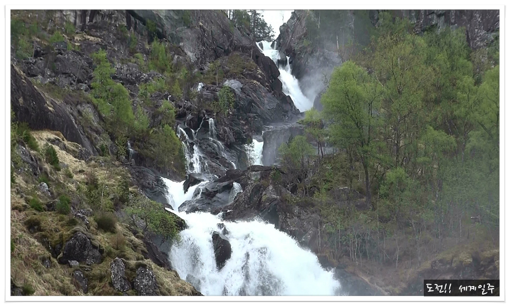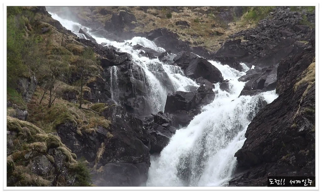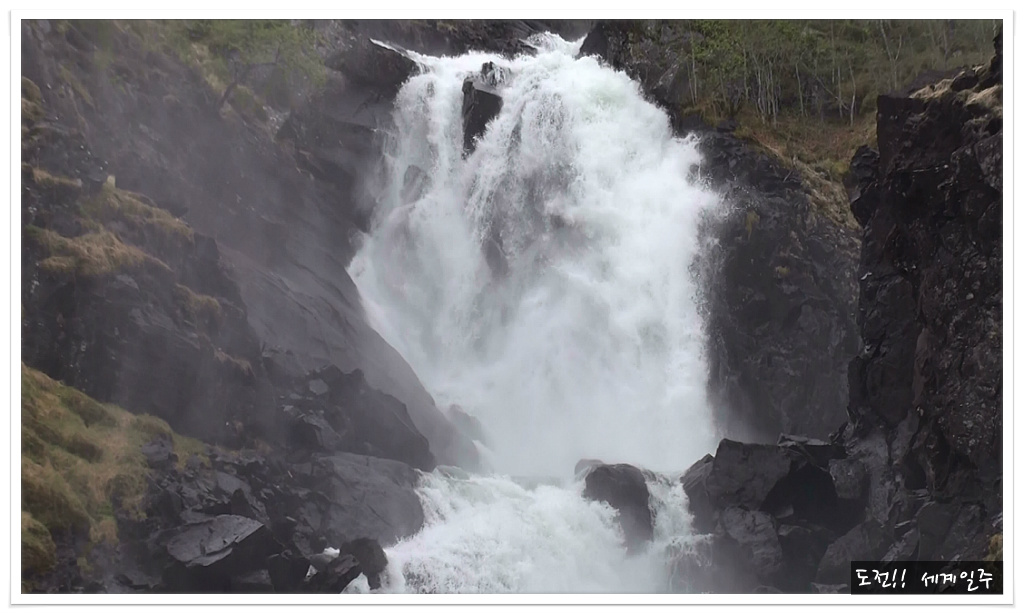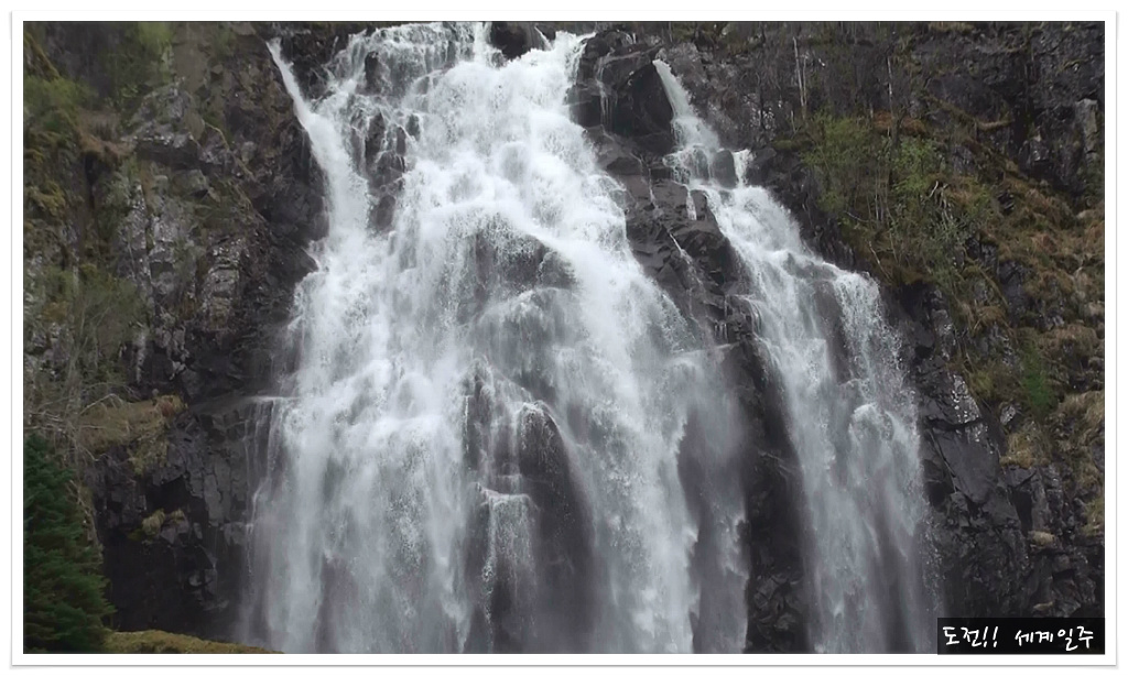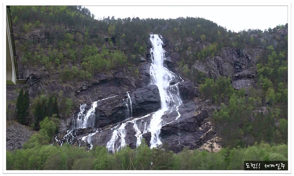 노르웨이 유빙중 얼마나 많은 폭포들은 보았던가?? 작은 폭포들은 눈에 들어오지도 않는데 이곳은 제법 큰 폭포이다