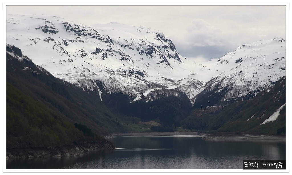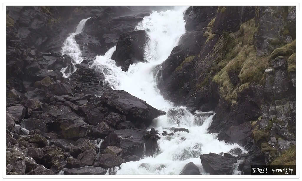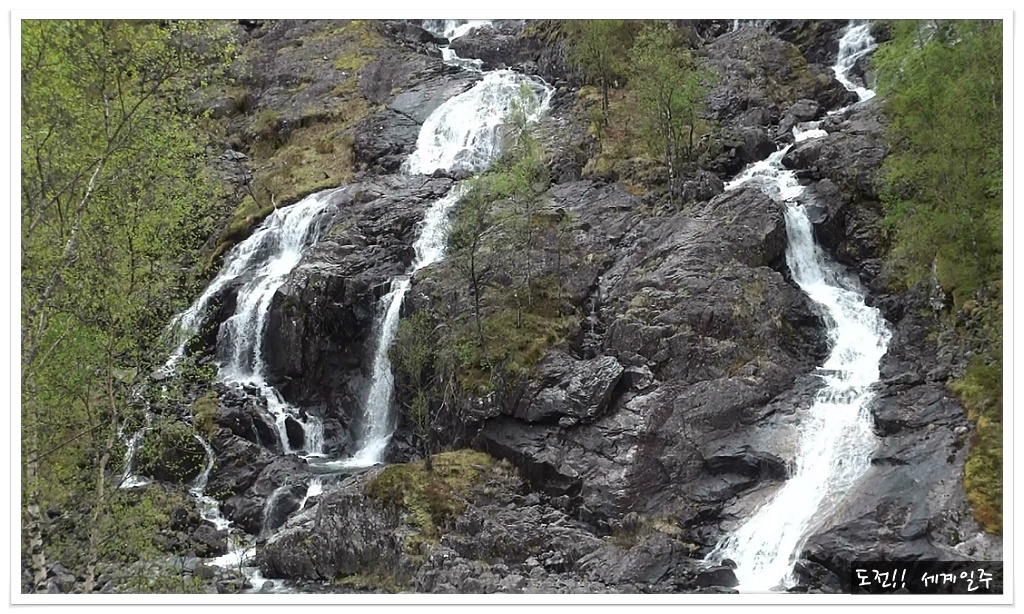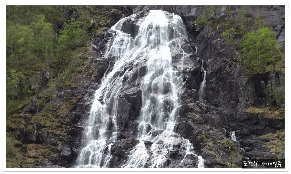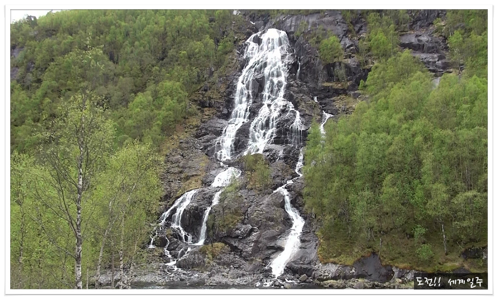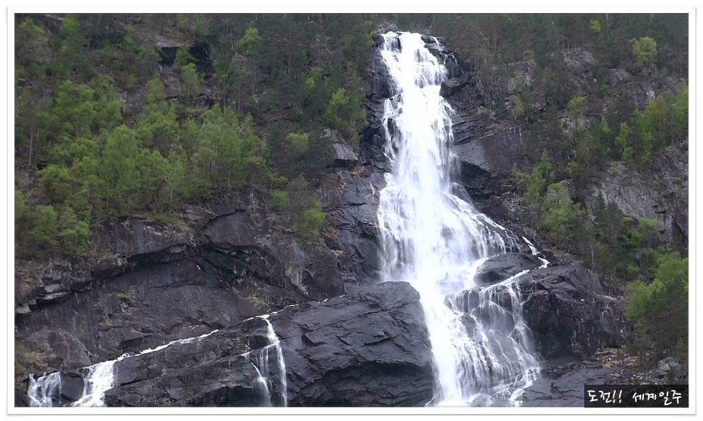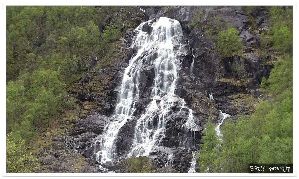 노르웨이 유빙중 얼마나 많은 폭포들은 보았던가?? 작은 폭포들은 눈에 들어오지도 않는데 이곳은 제법 큰 폭포이다