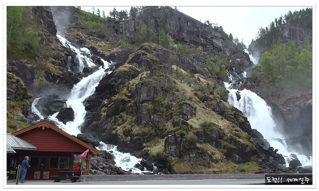 13번 NTR을 타고 오따(Odda)를 지나면 나오는 거대한 쌍폭포를 만난다. 유명한 Latefossen 폭포이다