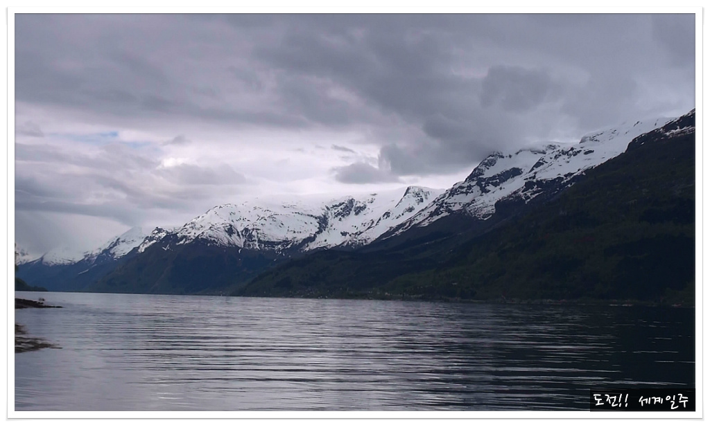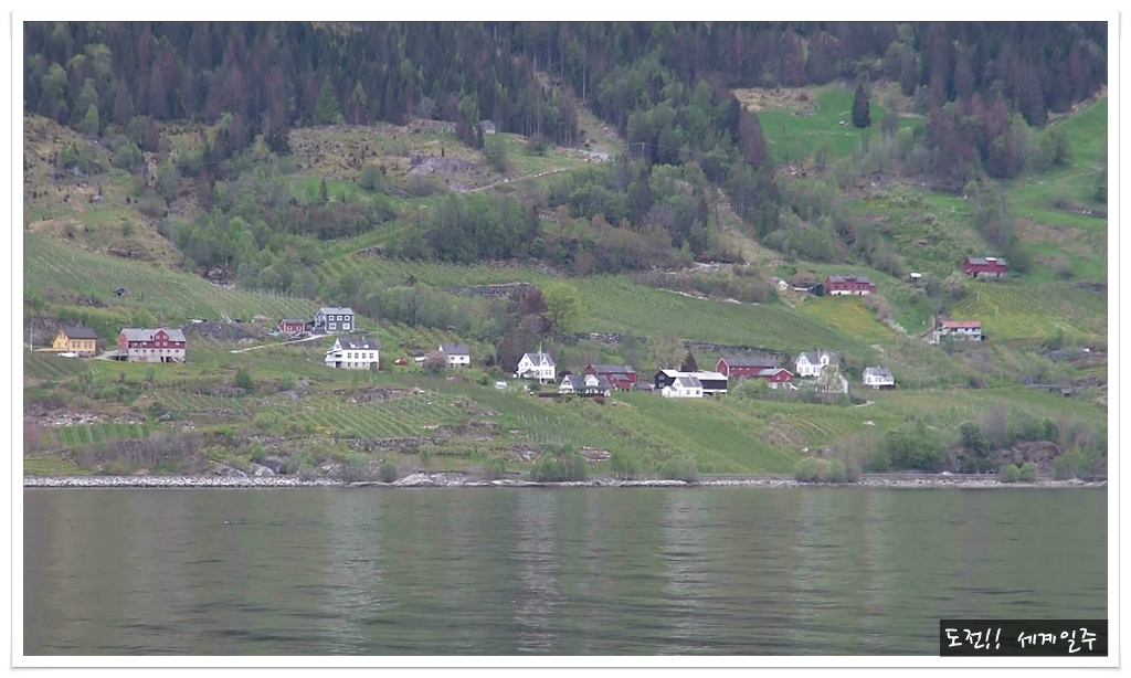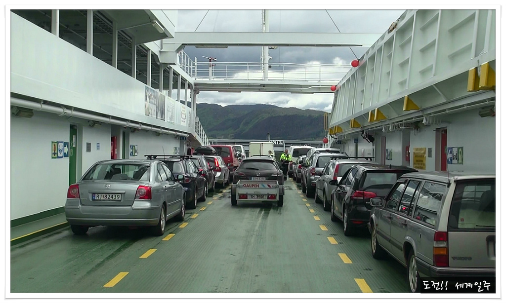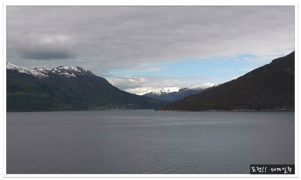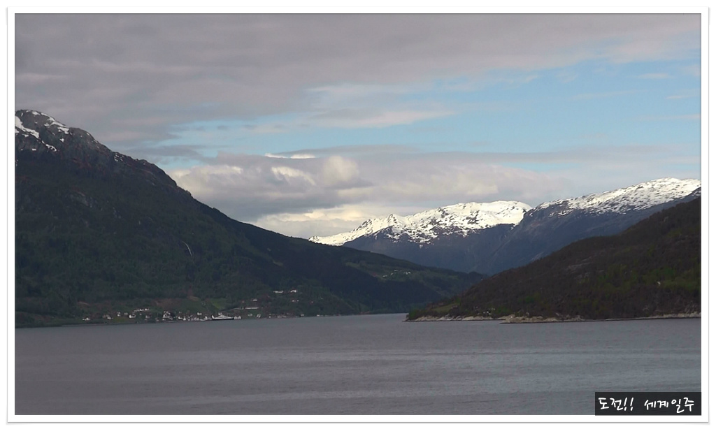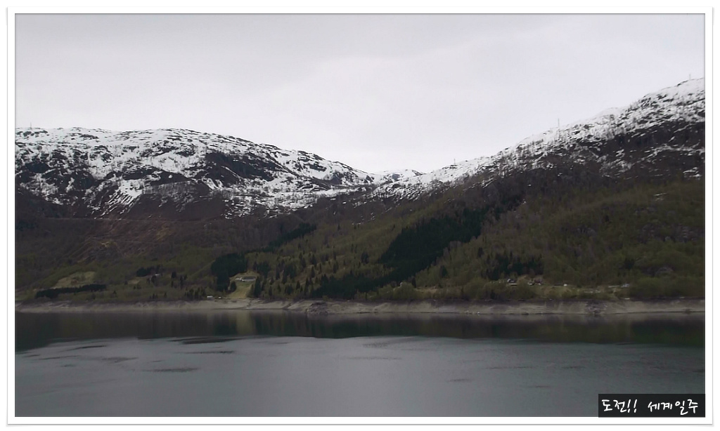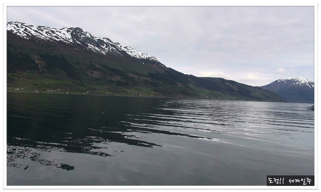 현재 하르당 피요르드 절경을 지나고 있다. 하르당 피요르드는 연어와 송어 양식을 많이 하는곳이다