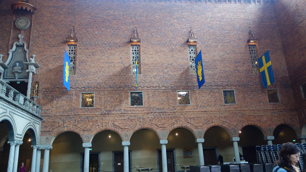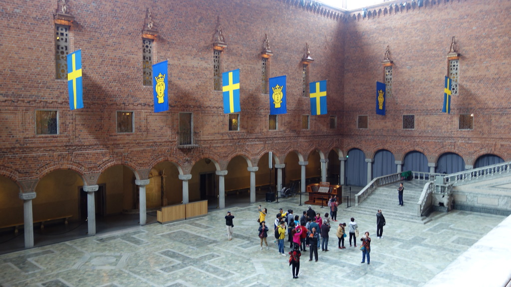 스톡홀름 시청사 내부는 가이드 투어만 가능하다. 09:00~15:00 (30분 간격). 1층 여행자 인포메이션에서 가이드를 신청한후 대기한다