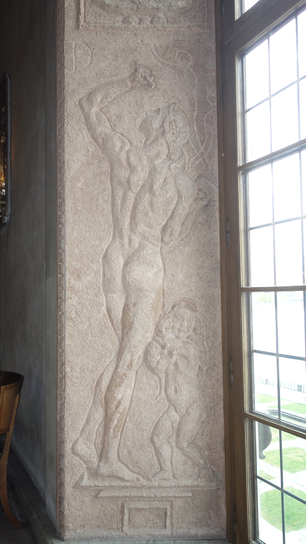 왕자의 방 창문쪽에는 치장 벽토로 만든 작품이 유명하다 (치장 벽토 - 손으로 벽에 흙을 발라 만드는 조각)
