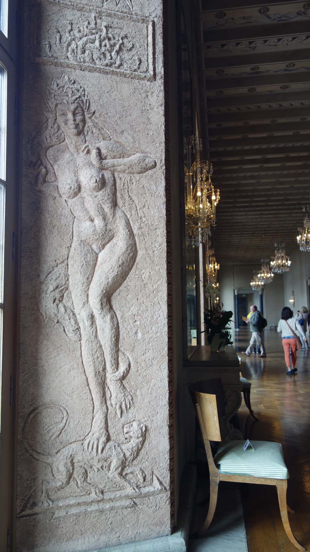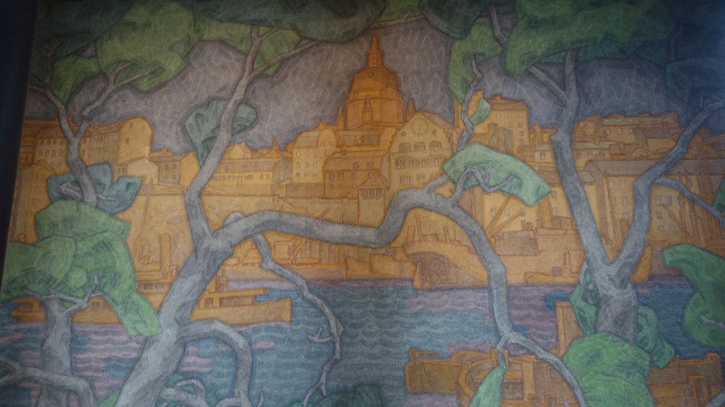 왕자의 방 창문 맞은편에 있는 벽화들 - 창문을 등지고 앉은 방문자들에게 멜라렌 호수와 스특홀름 전경을 간접적으로 표현