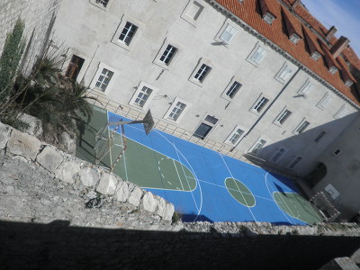 △ 산과 비탈길이 많고 평지가 적은 두브로브니크의 학교 운동장,