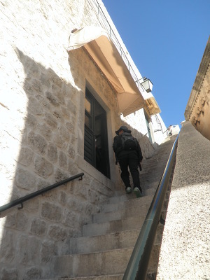△ 계단 아래쪽에 성벽투어 매표소가 있고 계단 중간에서 표검사를 합니다.