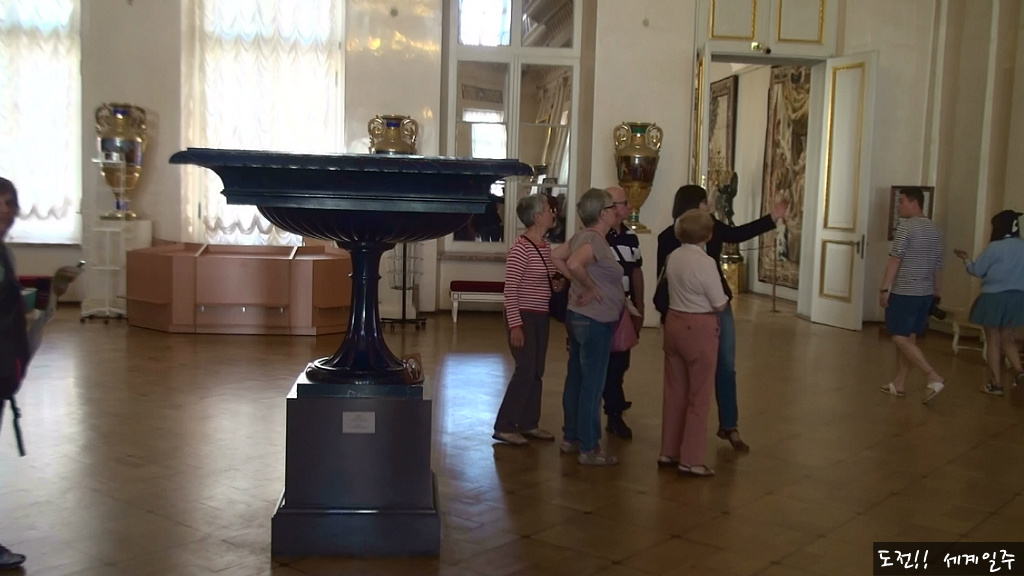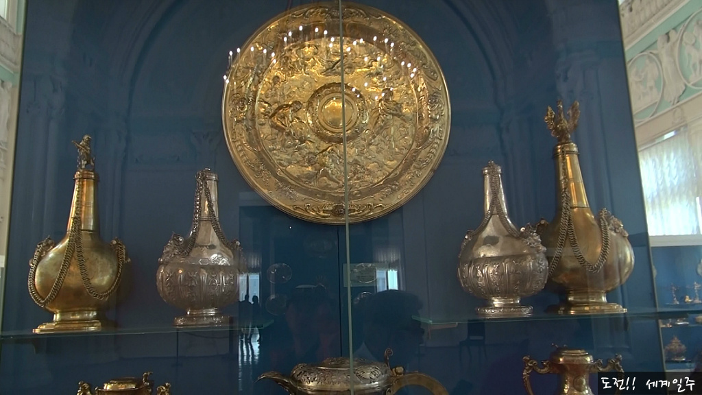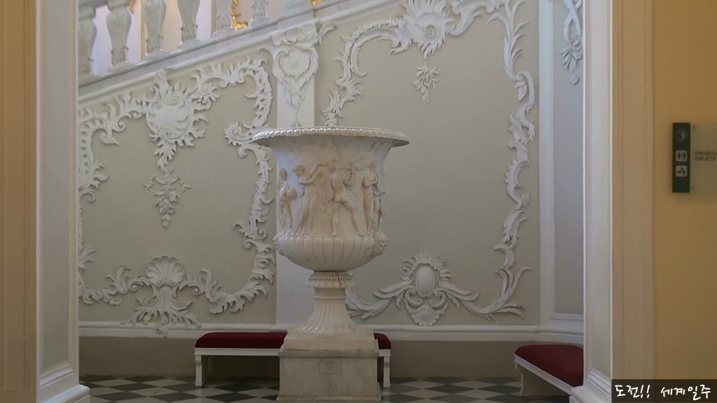 1층의 화려한 홀은 겨울궁전의 동궁 자리였다는데 현재는 그리스 로마의 멋진 유물들이 전시되어 있다(사진은 벽옥 항아리)