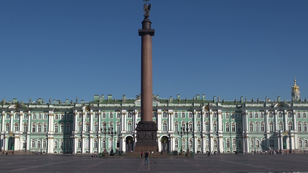 에르미타쥐 박물관앞 궁전 광장은 제정 러시아 시절 자유주위 상징인 3대 혁명이 일어난 곳이며 알렉산드르 원주기둥이 우뚝 서있다