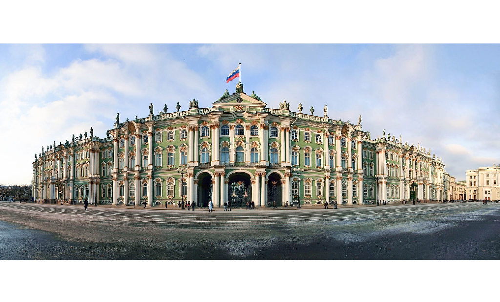 에르미타쥐 미술관은 1762년 로코코 건축 양식으로, 방과 홀 1,056개, 계단 117개, 창문 1,945개, 지붕위 조각 170개로 총 5개의 건물