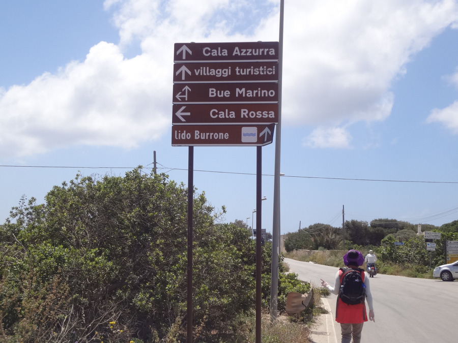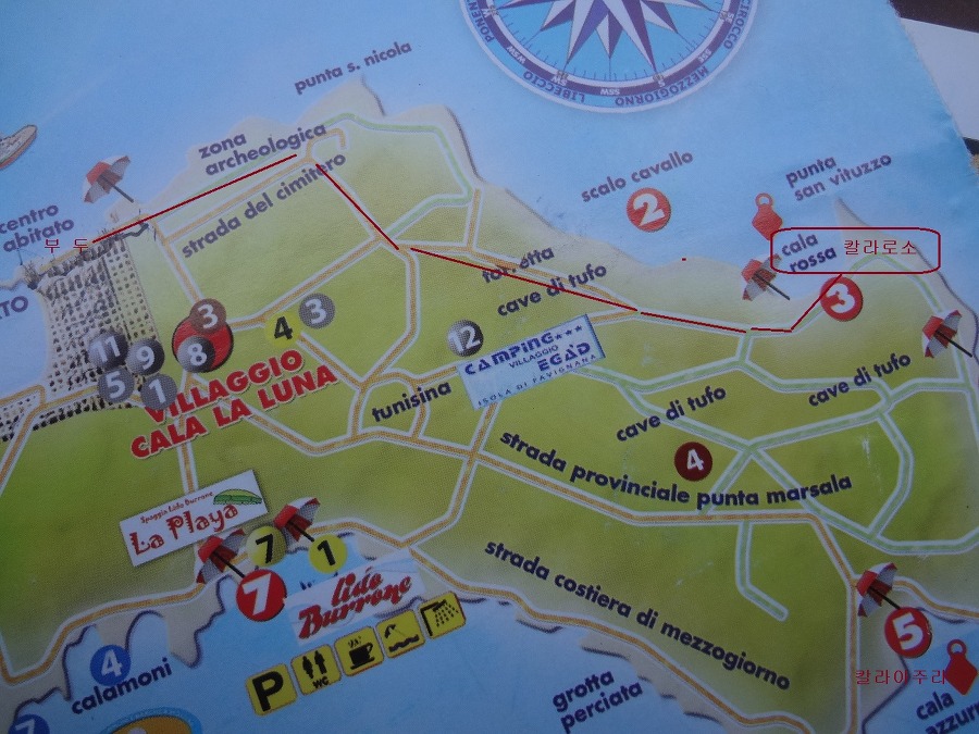 마침 자전거를 타고 지나가는 관광객에게 Cala Rossa 를 물으니 애매한 표정을