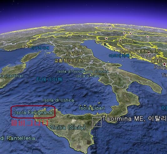 시칠리아 섬의 동쪽 타오르미나와 서쪽인 이곳 트라파니 앞 바다 에서 촬영되었다.