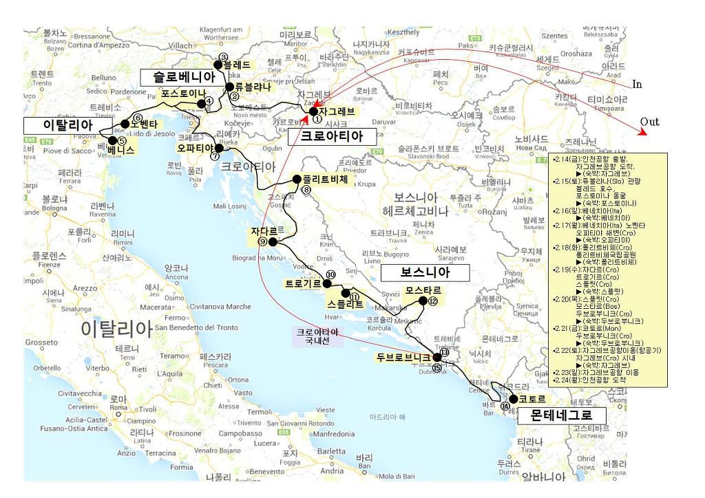 동유럽 겨울여행[발칸+베니스] 일정 지도입니다. *** 일정상 모스타르는 생략 했습니다. |