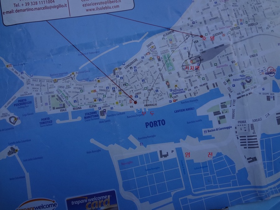 다른 섬에 들러지 않고 직행하는 바람에 15시 05분에 트라파니 항 에 도착한다.