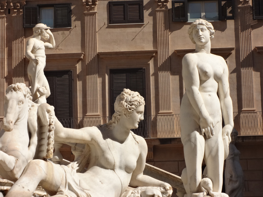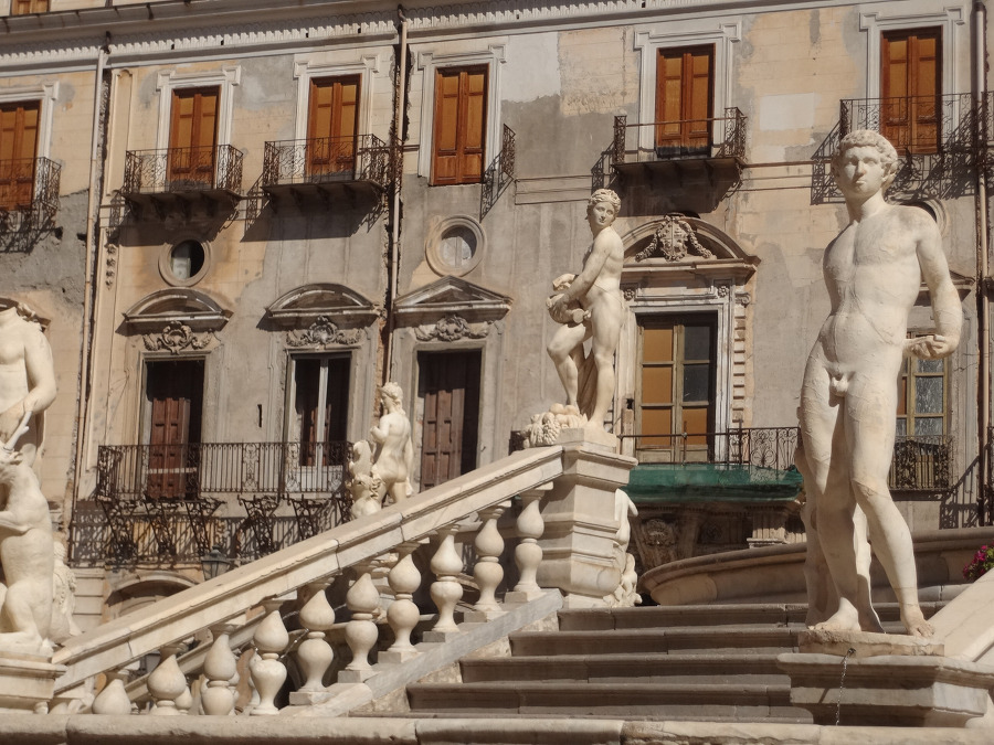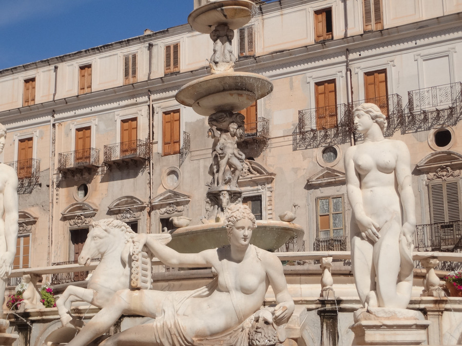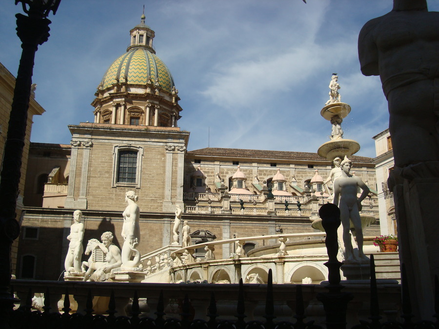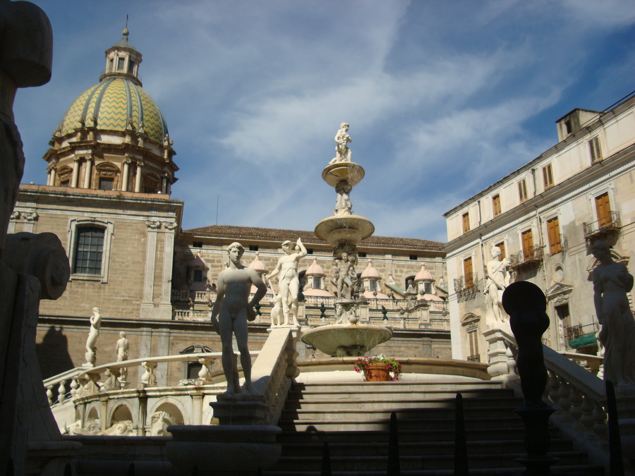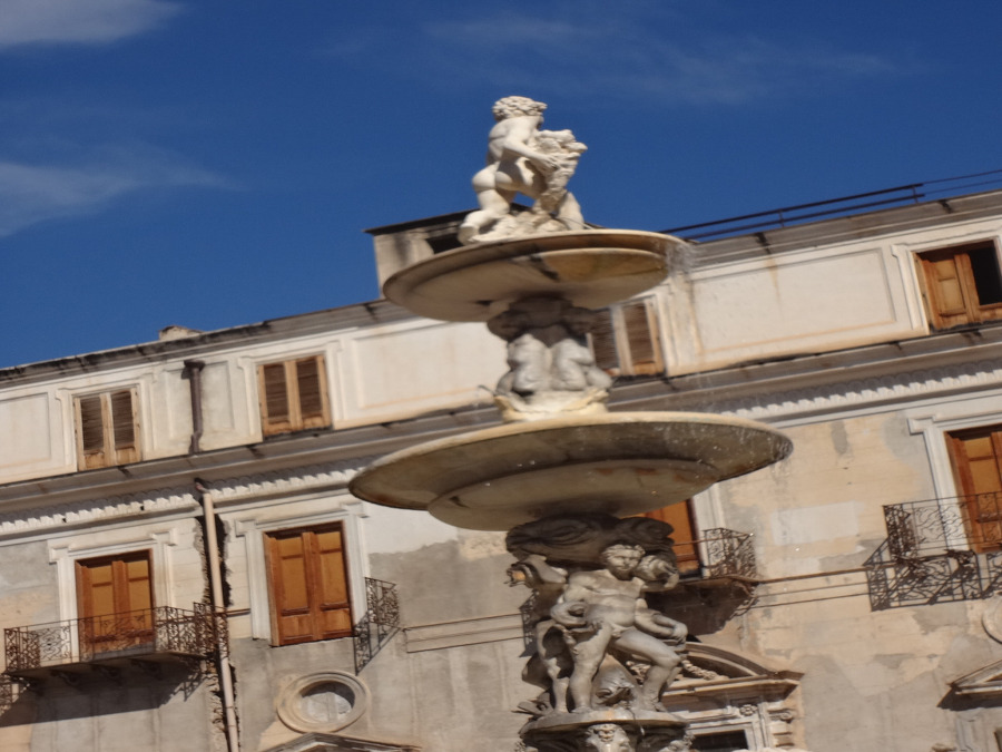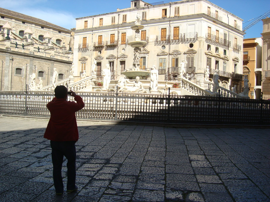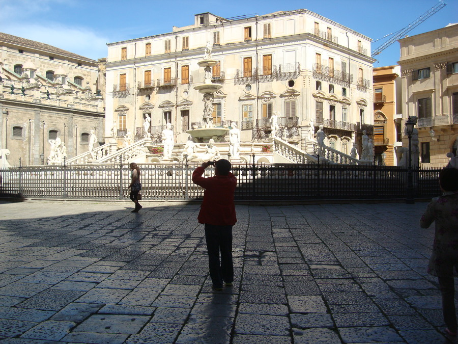 돌아서 앞쪽으로 가니 거기 프레토리아 광장 Piazza Pretoria 에 큰 분수가 있는 데!!!