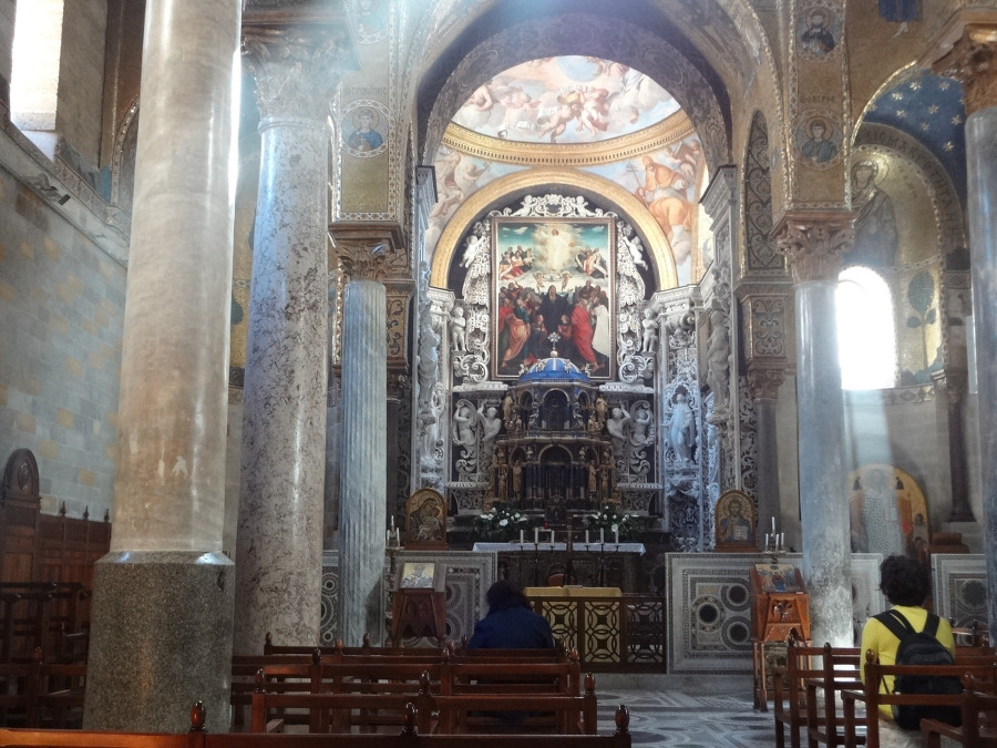 12세기에 아랍-노르만 양식 으로 건축되었으며 예수님이 새겨진 아치형 홀은